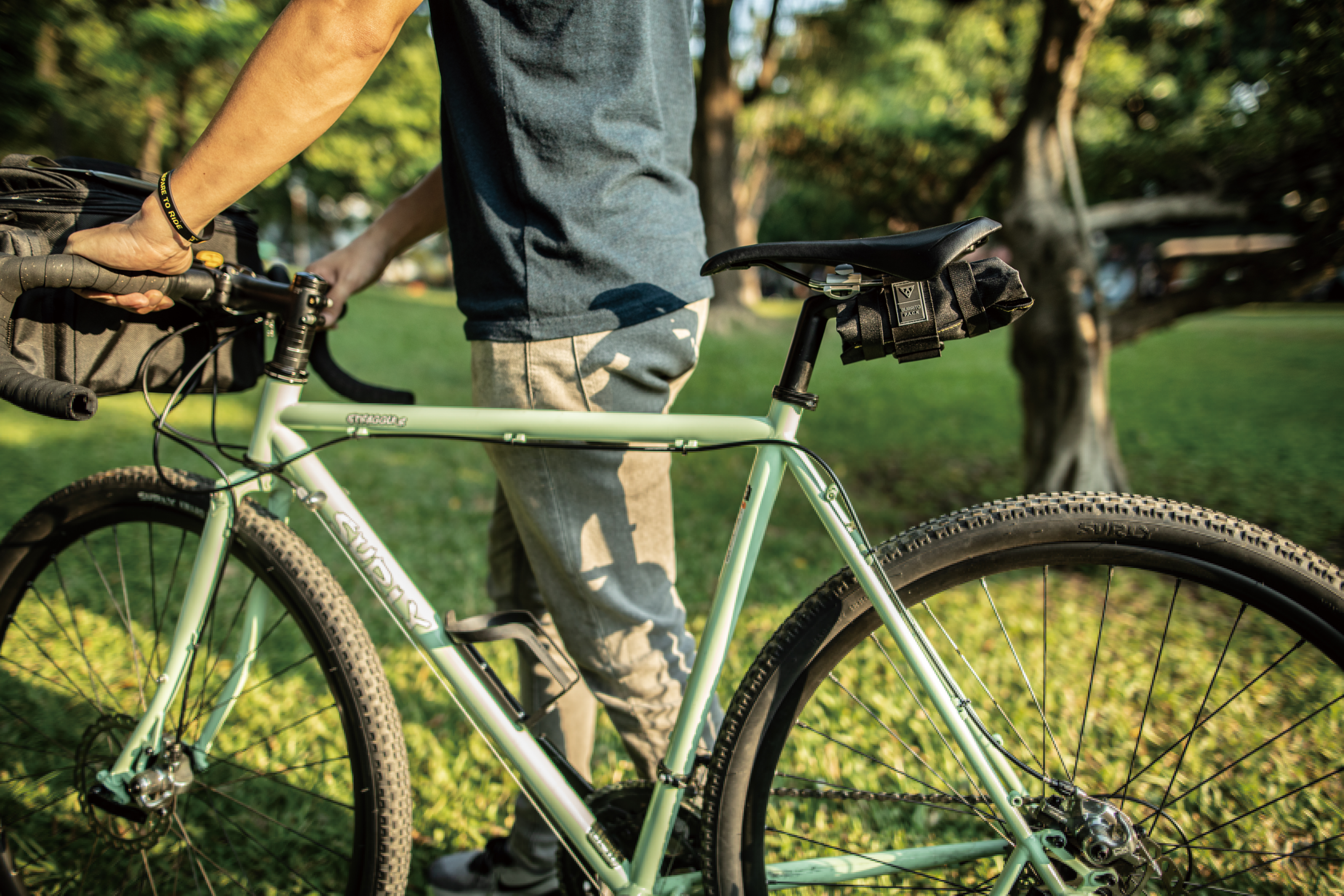 Wähle flexible und wetterfeste Taschen wie das Burrito Pack oder den Wedge Pack 2. Sie bieten ausreichend Stauraum für längere Touren und bleiben auch auf Schotterwegen klapperfrei an Ort und Stelle.