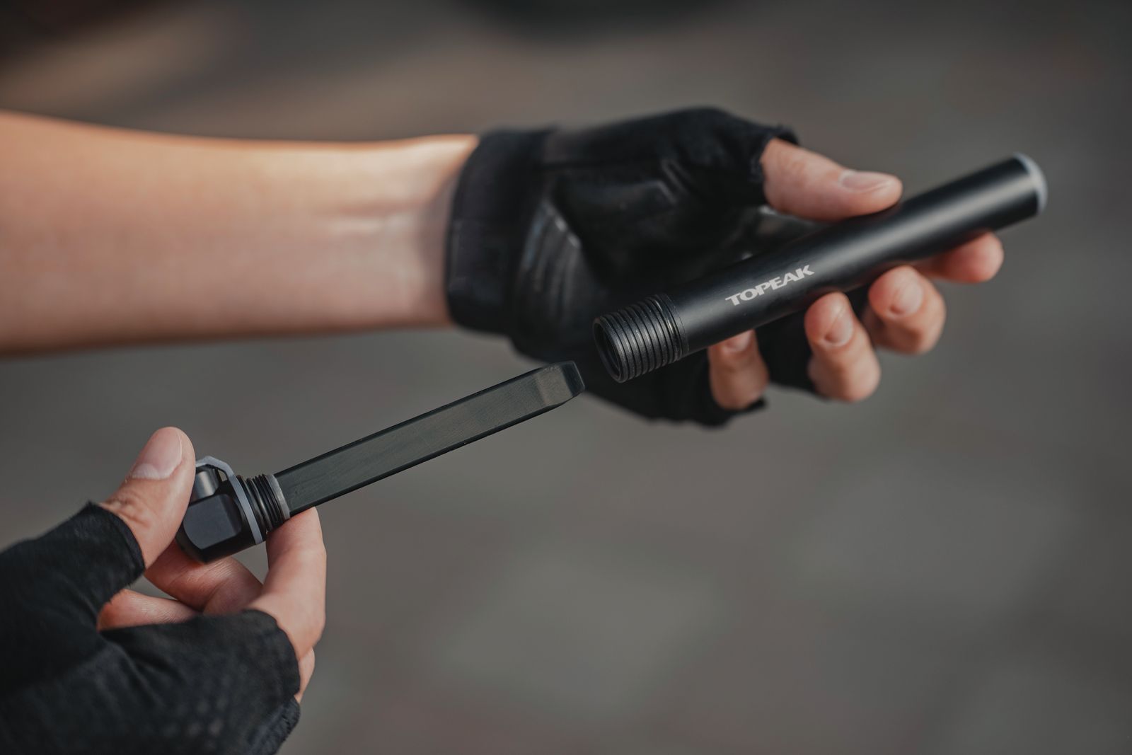 Weniger Kraftaufwand, mehr Kontrolle – ideal für MTB-, Enduro- und Gravity-Fahrer, die auch bei widerspenstigen Tubeless-Reifen schnell ans Ziel kommen wollen. Obendrein punktet er – genauso wie der Two Timer X – mit dem Benefit des integriertem 5 mm- & 6 mm-Innensechskant-Bits zum Lösen bzw. Festziehen von Steckachsen.