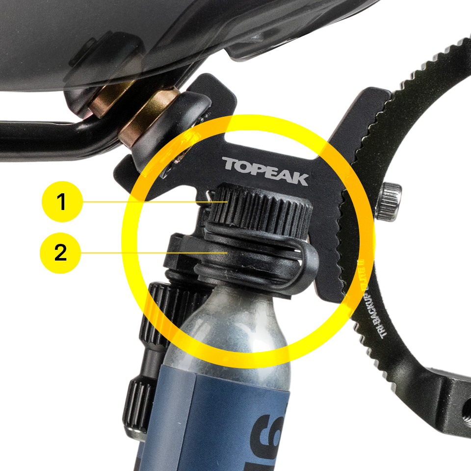 Die zweite Generation der bewährten TRI-BACKUP® ELITE-Sattelgestell-Halterung ist mit noch mehr runden und ovalen Sattelgestellen aus Metall und Carbon kompatibel. CO2-Kartuschen werden für maximale Sicherheit während des Transports doppelt gesichert. Für optimale Erreichbarkeit winkelverstellbar und ideal kombinierbar mit Topeak TRI-Cage / TRI-Cage 2 Flaschenhaltern mit "Forward Release"-Design für bestes Handling.