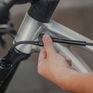 Ultra-leichte Dämpferpumpe mit 360° drehbarem, flexiblem Schlauch mit geflochtener Ummantelung und extrem kleinem Packmaß. Ideal im Trikot oder einer kleinen Tasche verstaubar und perfekt als kleine Notfallpumpe nutzbar. Das Pressure-Rite-Schock-Ventil verhindert ungewollten Luftverlust beim Auf- & Abschrauben.