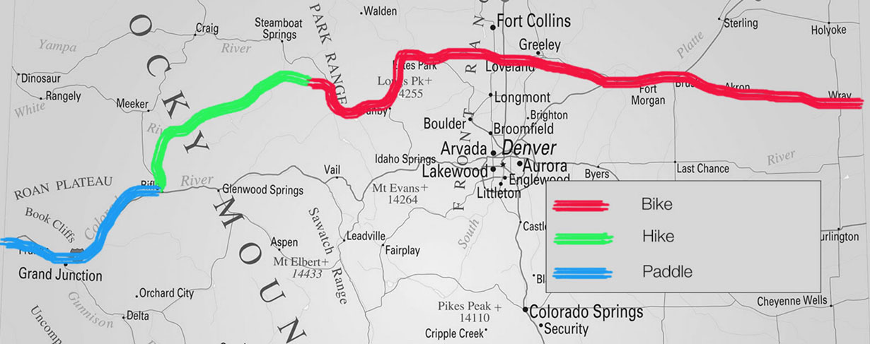 Despite these high-level achievements, Larsen believes, "you don't have to climb Mount Everest to have a unique and compelling adventure. Sometimes, putting some interesting parameters on an activity can make it challenging, fun, and original." Which is why he and a small team headed out on the back roads, trails, and waterways of Colorado in less than a week.
