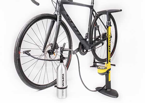 With a capacity of 1000cc of air inside this aluminum tank – It’s the perfect solution to mount your tubeless tires. Last but not least, the head of TubiBooster can be used as a CO2 inflator and is compatible with Topeak’s threaded 16g/25g CO2 cartridges.