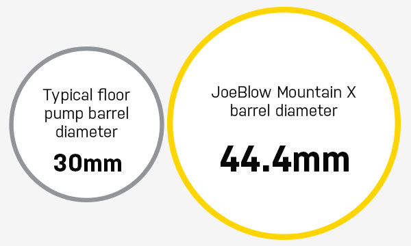 Super-sized barrel inflates nearly 50% faster than normal floor pumps