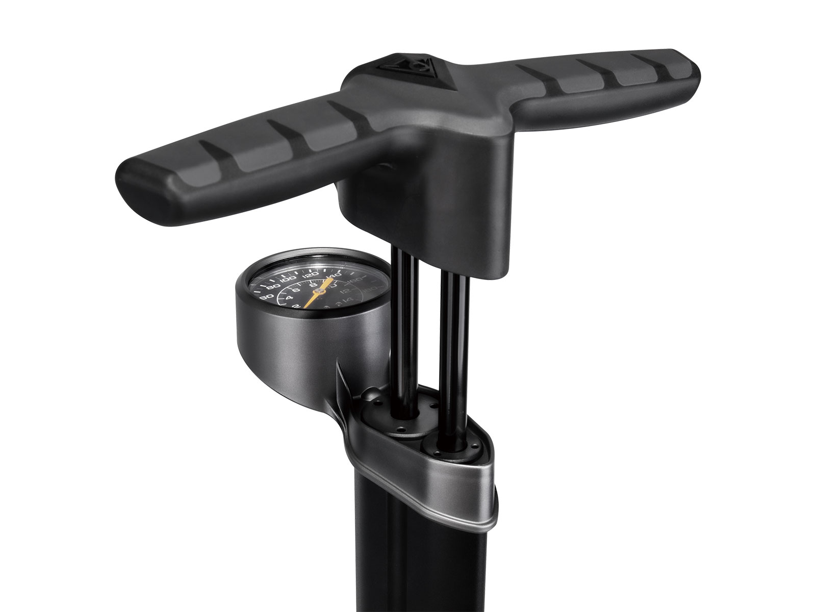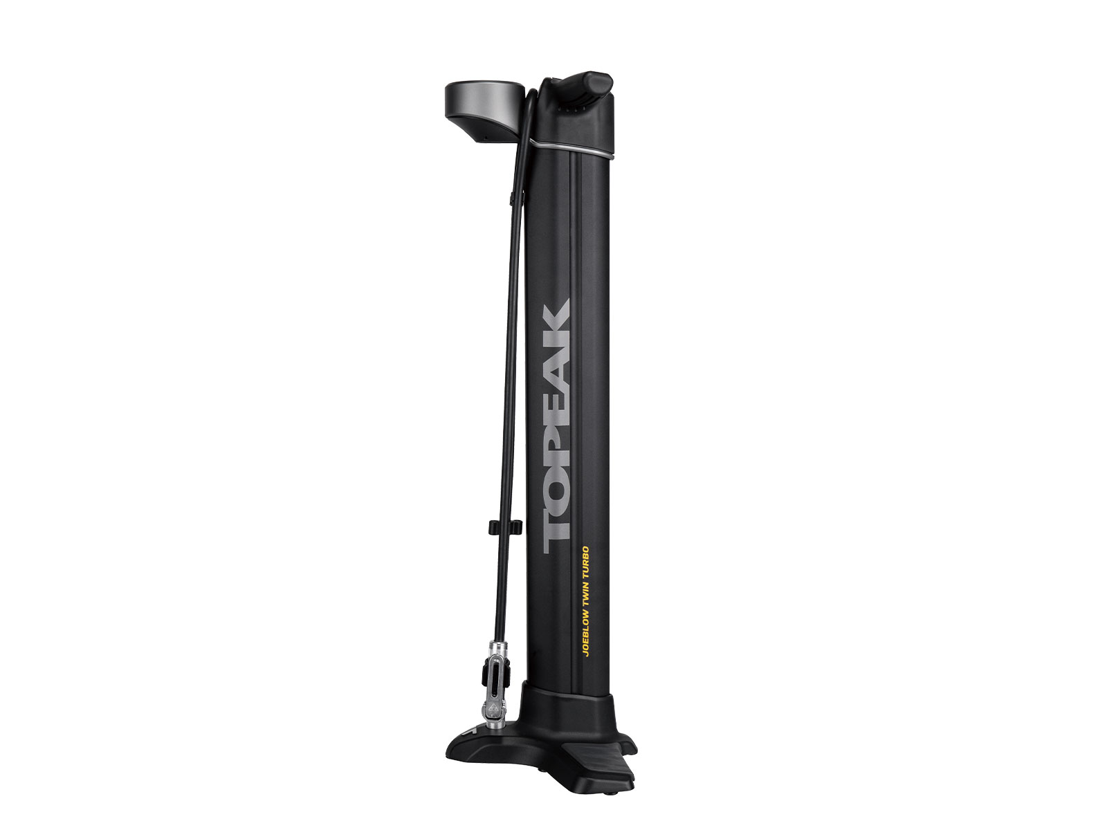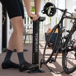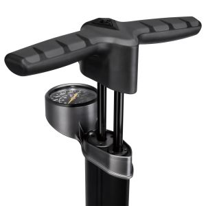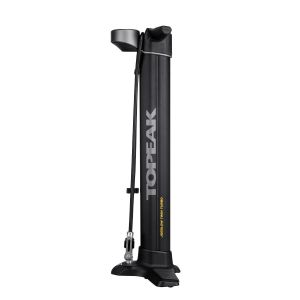 For over 25 years, Topeak engineers have had one dream in mind. Create the ultimate floor pump. It must have high pressure air output and massive volume delivery to fill both road and MTB tires easily and efficiently. TwinTurbo technology utilizes the pull and push of every stroke by transferring air between its two barrels. Pulling the handle up moves a massive amount of air volume from the larger barrel into the smaller barrel. Pushing the handle down compresses the air in the smaller barrel into high pressure output that fills road tires with high pressure, or MTB tires with large volume. No matter the type of tire, the JoeBlow® Twin Turbo will literally blow you away.