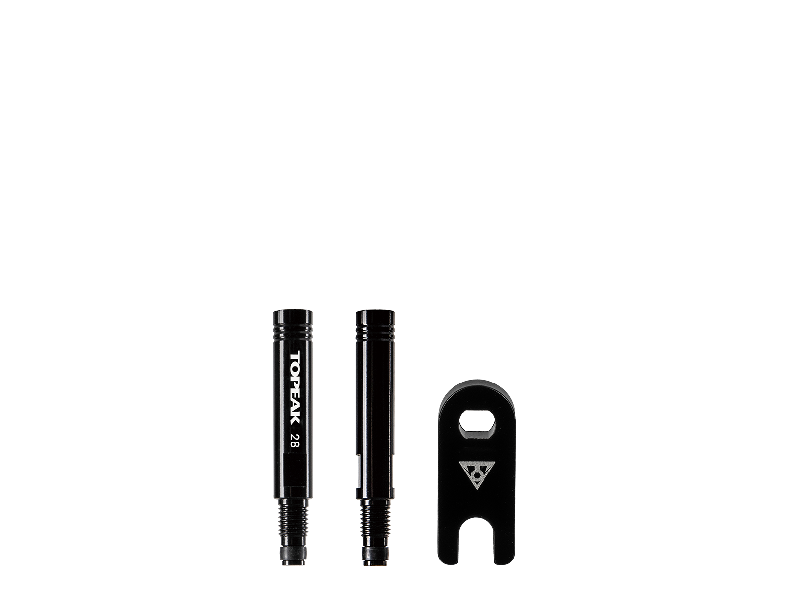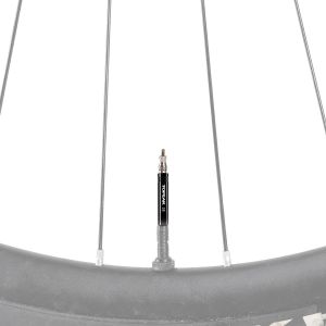 Durable alloy Valve Tool easily tightens or removes two-piece type Presta valve cores and valve extenders.