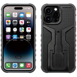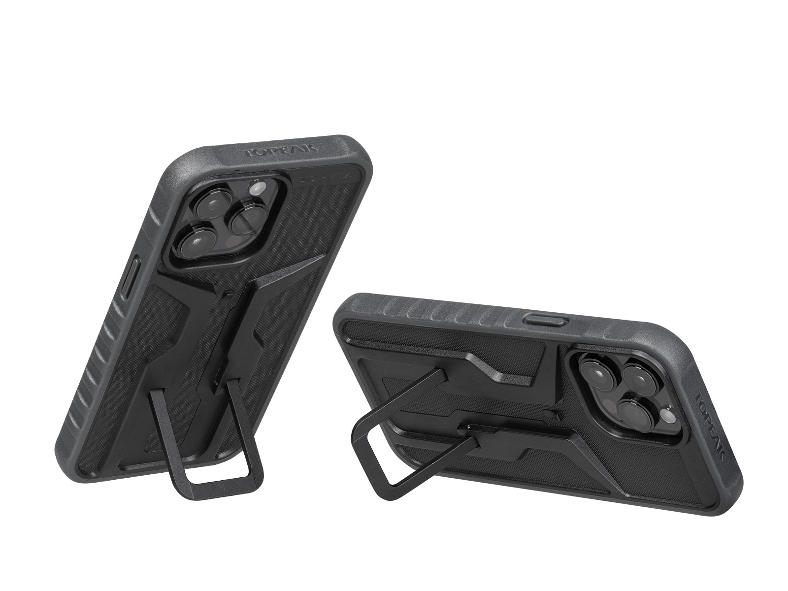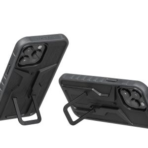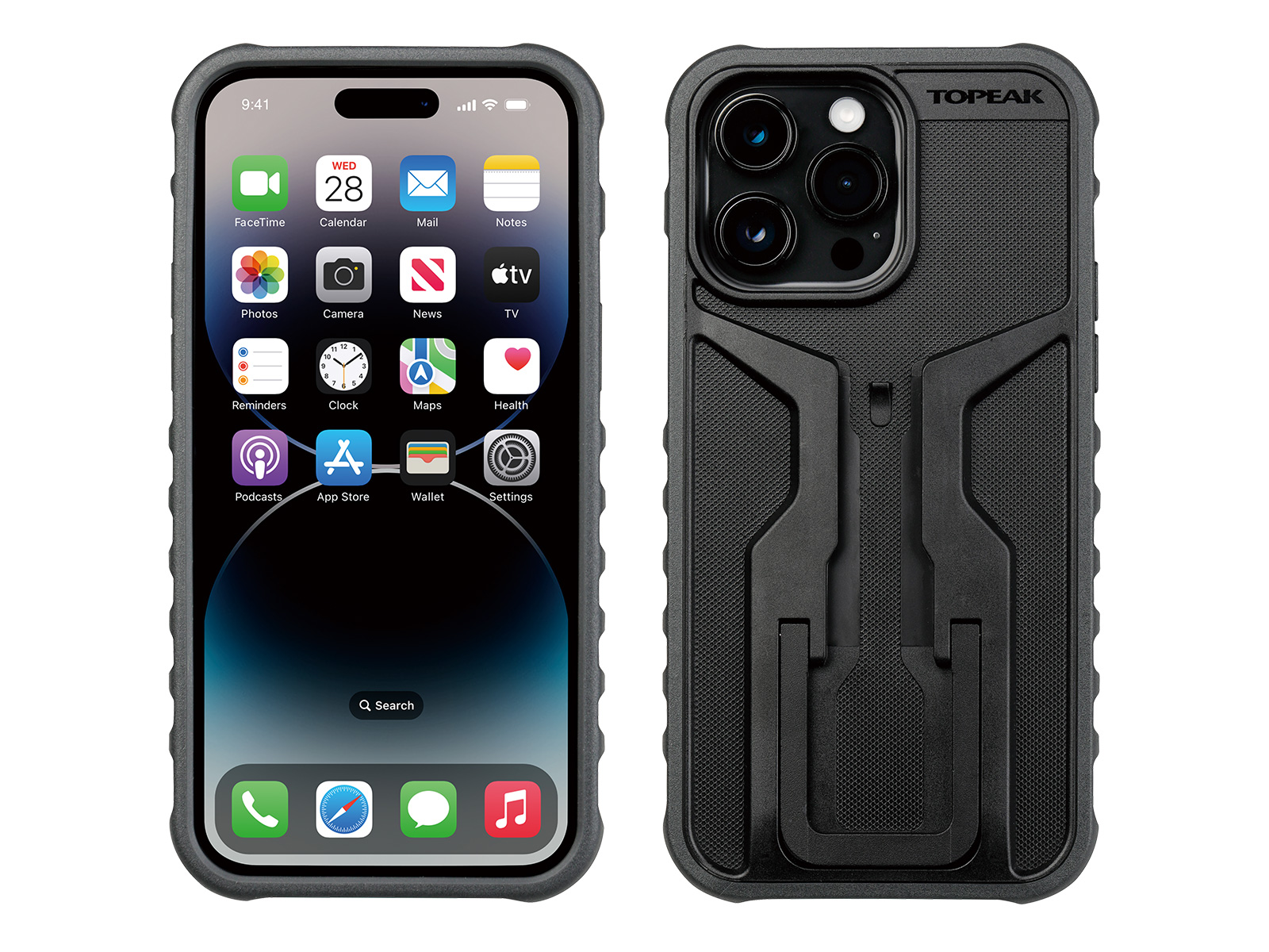 The RideCase for iPhone has a scratch-resistant, dual-density, non-slip, high-grade engineering polymer/rubber exoskeleton for shock and impact protection that holds your phone securely while on the go. Its full angle adjustment allows viewing in portrait or landscape modes and an Integrated flip stand for post-ride hands-free viewing. Compatible with Lightning cable charging.