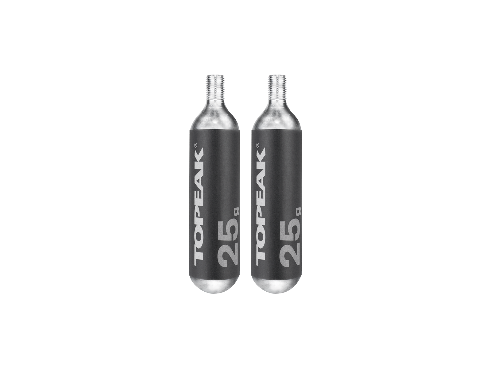 25g threaded CO2 cartridge (2 pieces). For Topeak HybridRocket series, CO2-Bra, TubiBooster, and AirBooster CO2 Inflators series.