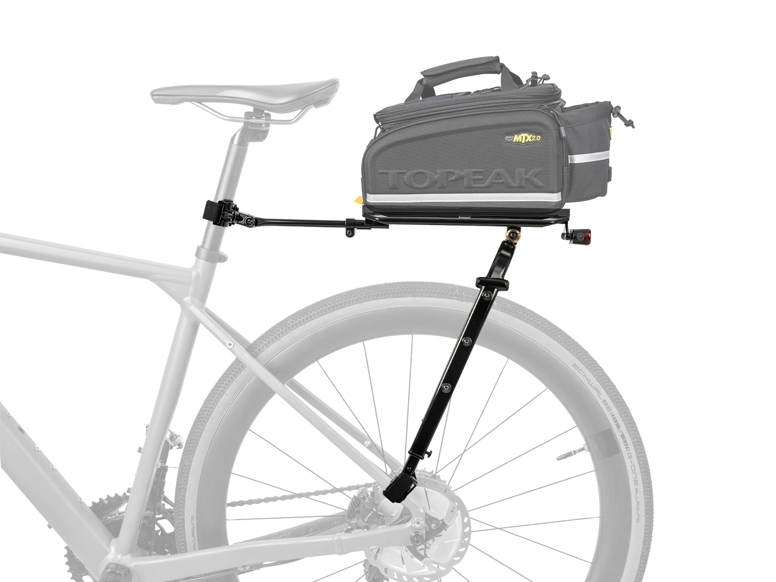 | Compatibility | • Fits Road & Gravel bikes up to 700x55C (not compatible with full suspension bikes) • Works with Topeak MTX QuickTrack 2.0, MIK®, and Racktime® SNAPIT 2.0 systems • Topeak Pannier Drybag, QR Fork Drybag, and VersaCage |