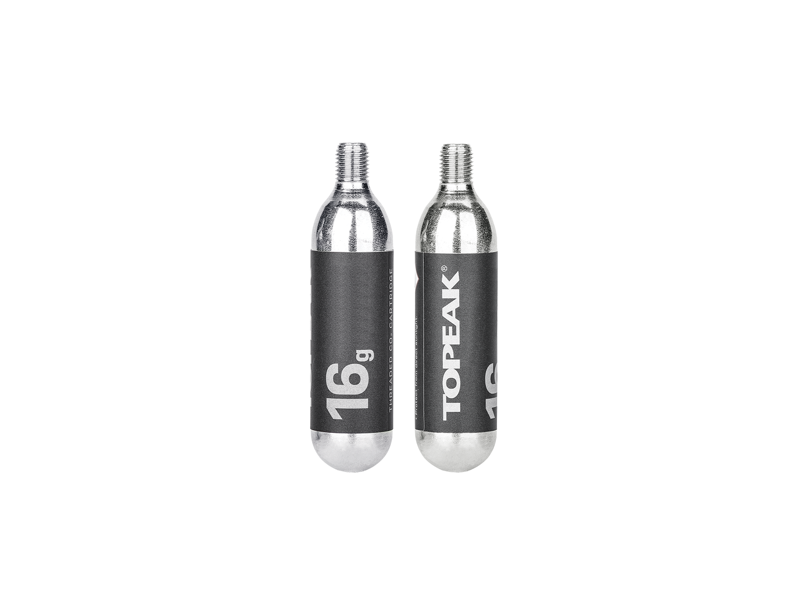 16g threaded CO2 cartridge (2 pieces). For Topeak HybridRocket series, CO2-Bra and AirBooster CO2 Inflators series.