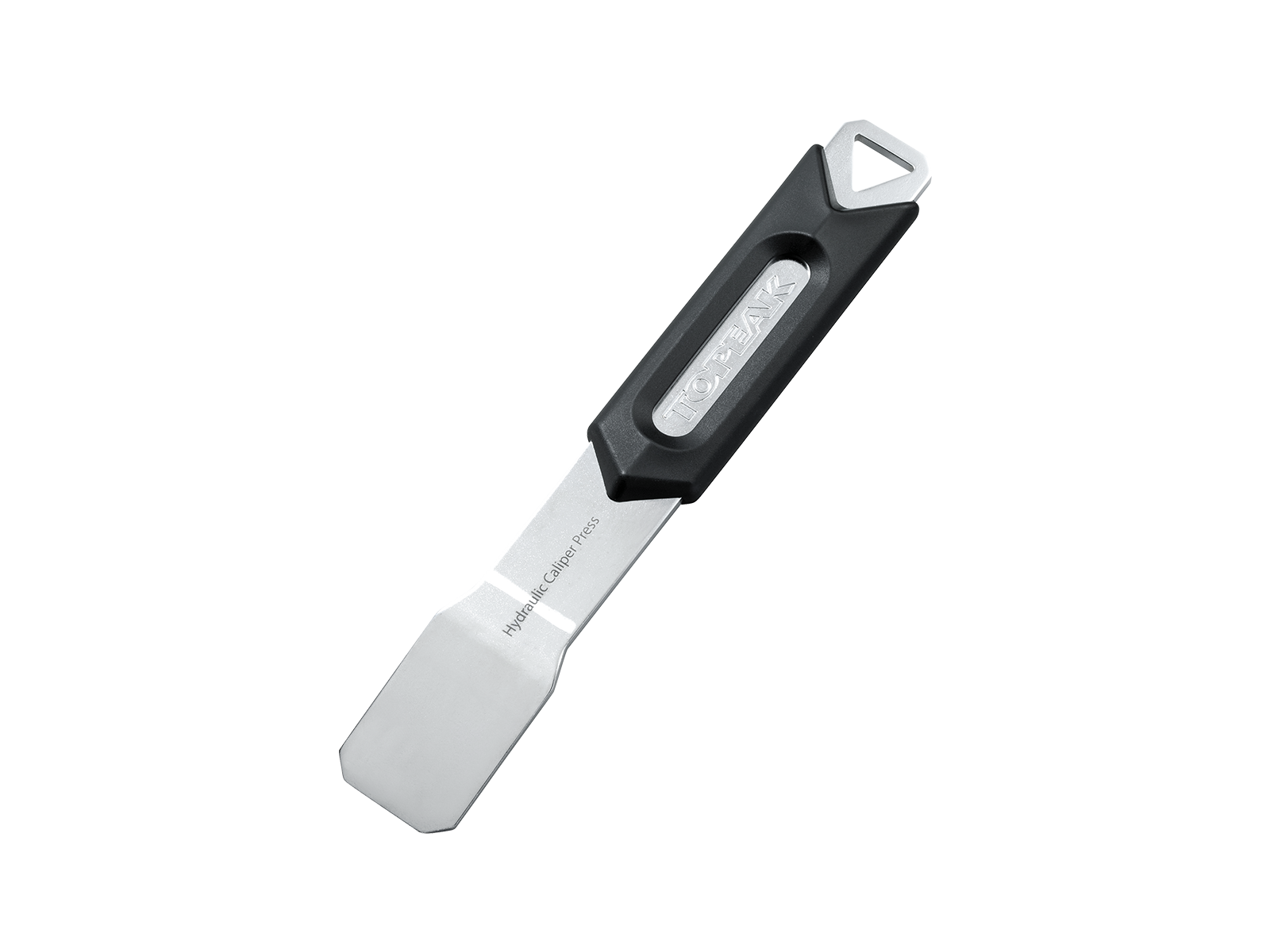 Hardened steel caliper pressing tool to push back pistons when replacing/aligning pads or bleeding hydraulic brake systems. Long padded handle for better leverage and comfortable use.