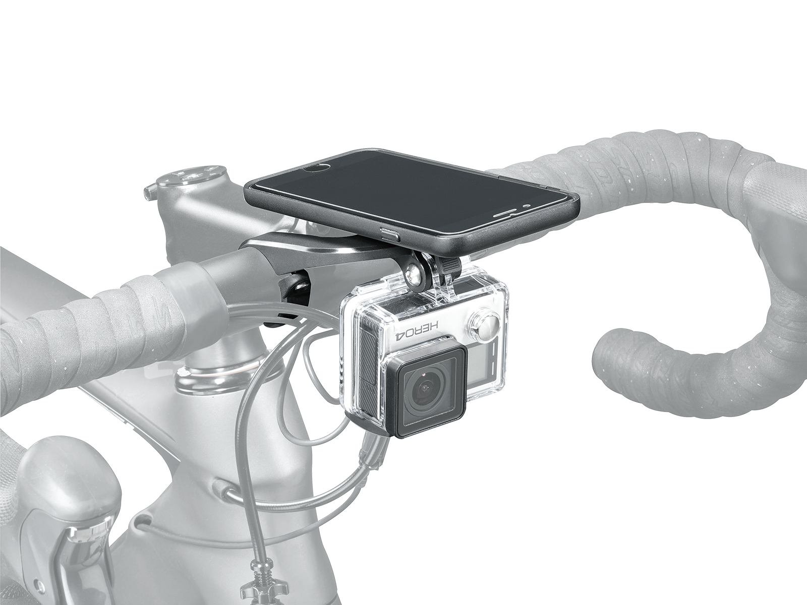 | Modular Multi-Mount Device | Integrated adapter for GoPro® / Shimano® Sport Camera / Garmin VIRB® X / XE Adapters included for Sony® Action Cam & Topeak AeroLux IWatt USB / WhiteLite® HP series front lights |