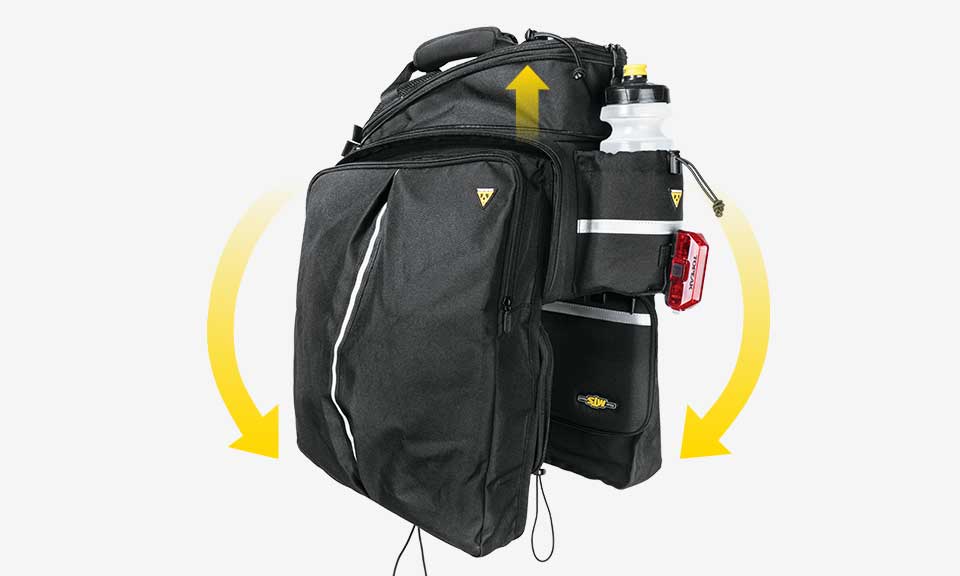 硬殼成型的側板設計結合柔軟的600D布料,形成一個抗撞擊、耐候性良好的行李袋。內袋的主要分隔和側板可擴展,提供額外的存儲容量。尾部水瓶袋讓您在長途旅行時攜帶更多水。可用綁帶式固定在行李架上,或使用整合版便利的安裝KLICKfix® / Racktime® Snapit或Vario Adapter。