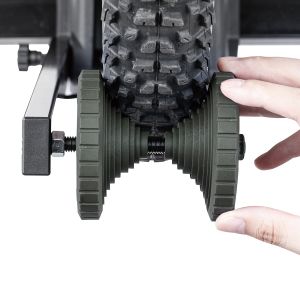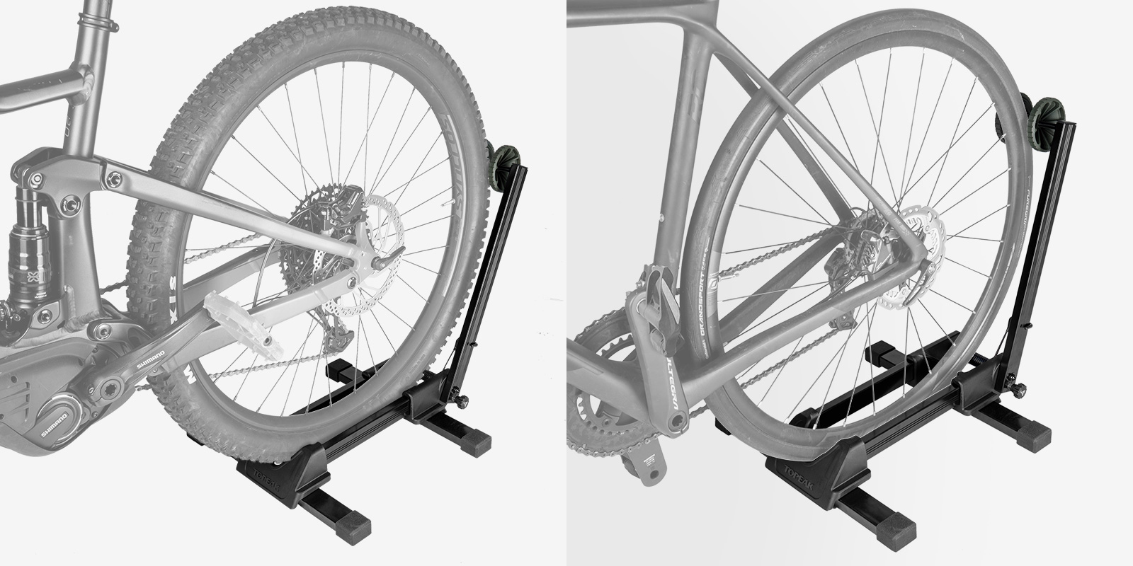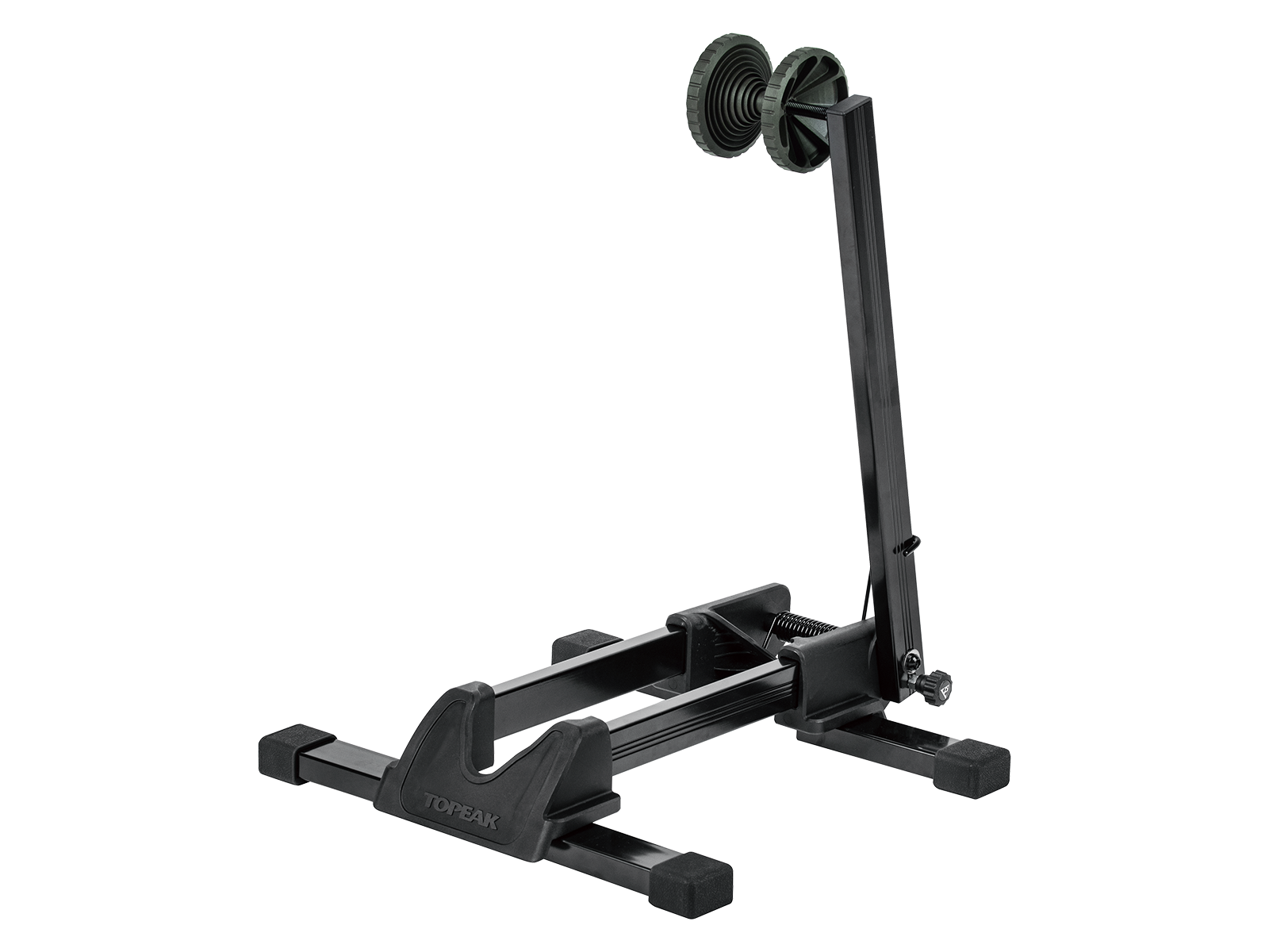 針對居家、門市陳列或收納自行車所研發的強壯鋁合金折疊立車架,彈力固定手臂可以穩固後輪提供更好的穩定性,可支援公路車20mm到登山車3:25”寬度後輪,適用市面上各種車款使用。