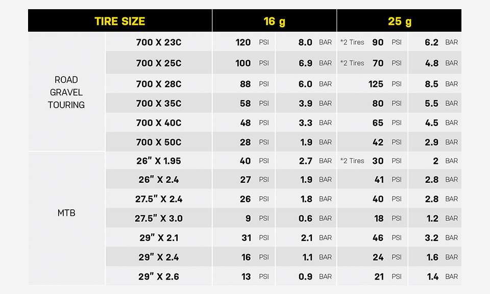 氣瓶與輪胎壓力對照表