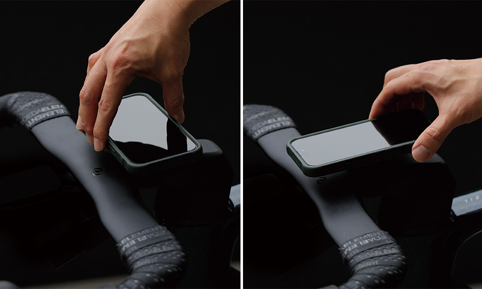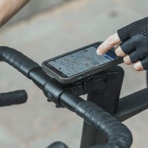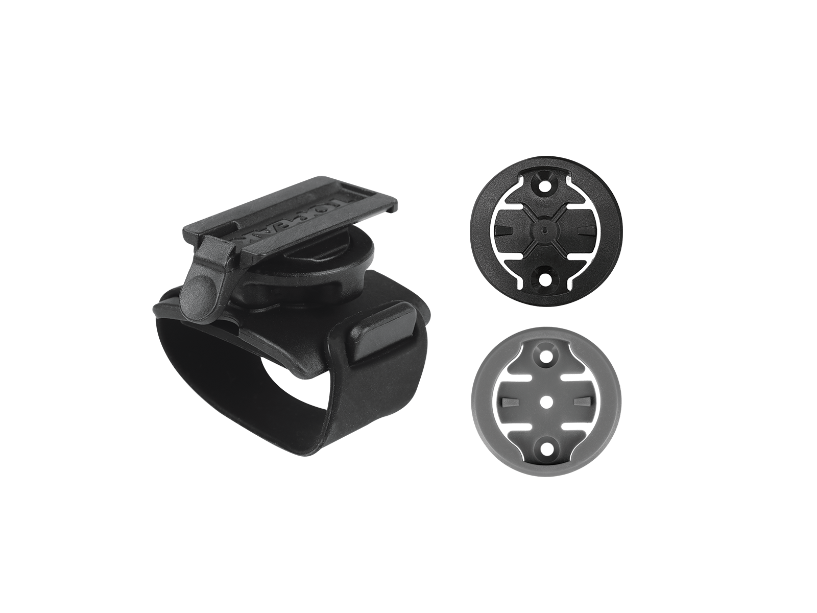 簡約橡膠帶支架提供安裝在龍頭上方,並附有可替換的碼表座。兼容Topeak Ridecase以及Garmin、Wahoo、Bryton等碼錶。此外,可以旋轉90度,為垂直和水平方向提供靈活的觀看選擇。