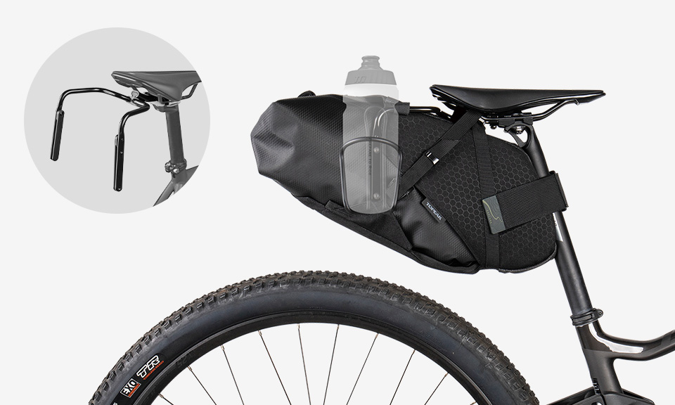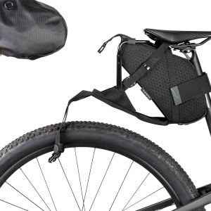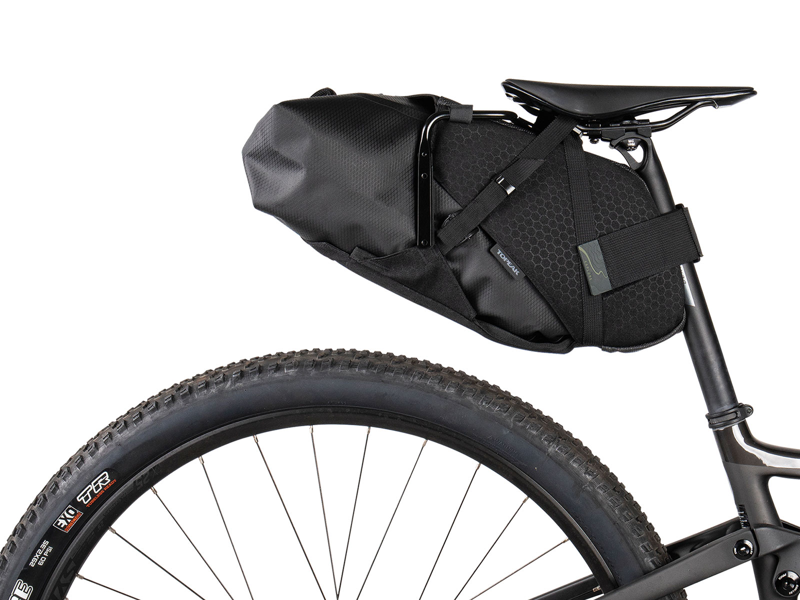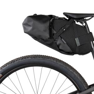 A large capacity seat bag specifically designed for bikepackers wanting a streamlined way to carry gear without the need for a rear rack. The reinforced, anti-slip/scratch fabric protects the saddle while the advanced mounting system enables convenient and secure mounting to seatpost and saddle rails. Easy access waterproof carry bag and built-in air release purge valve keeps bag compact and dry while you’re on your next adventure.